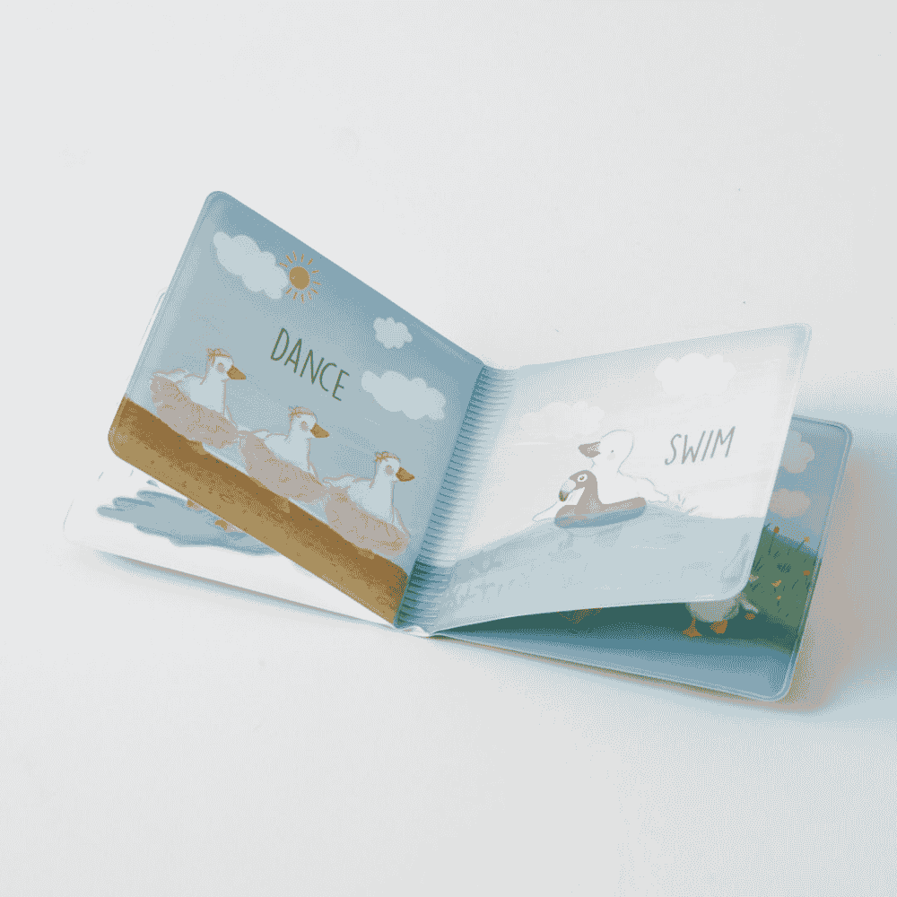 Make bath time fun and educational with Ducky’s Splashy Day Bath Book! Little ones will enjoy plenty of QUACK QUACKs and giggles as they follow our adorable and adventurous ducky through each page. Designed to teach verbs and action words, this waterproof bath book sparks imagination and early language skills.