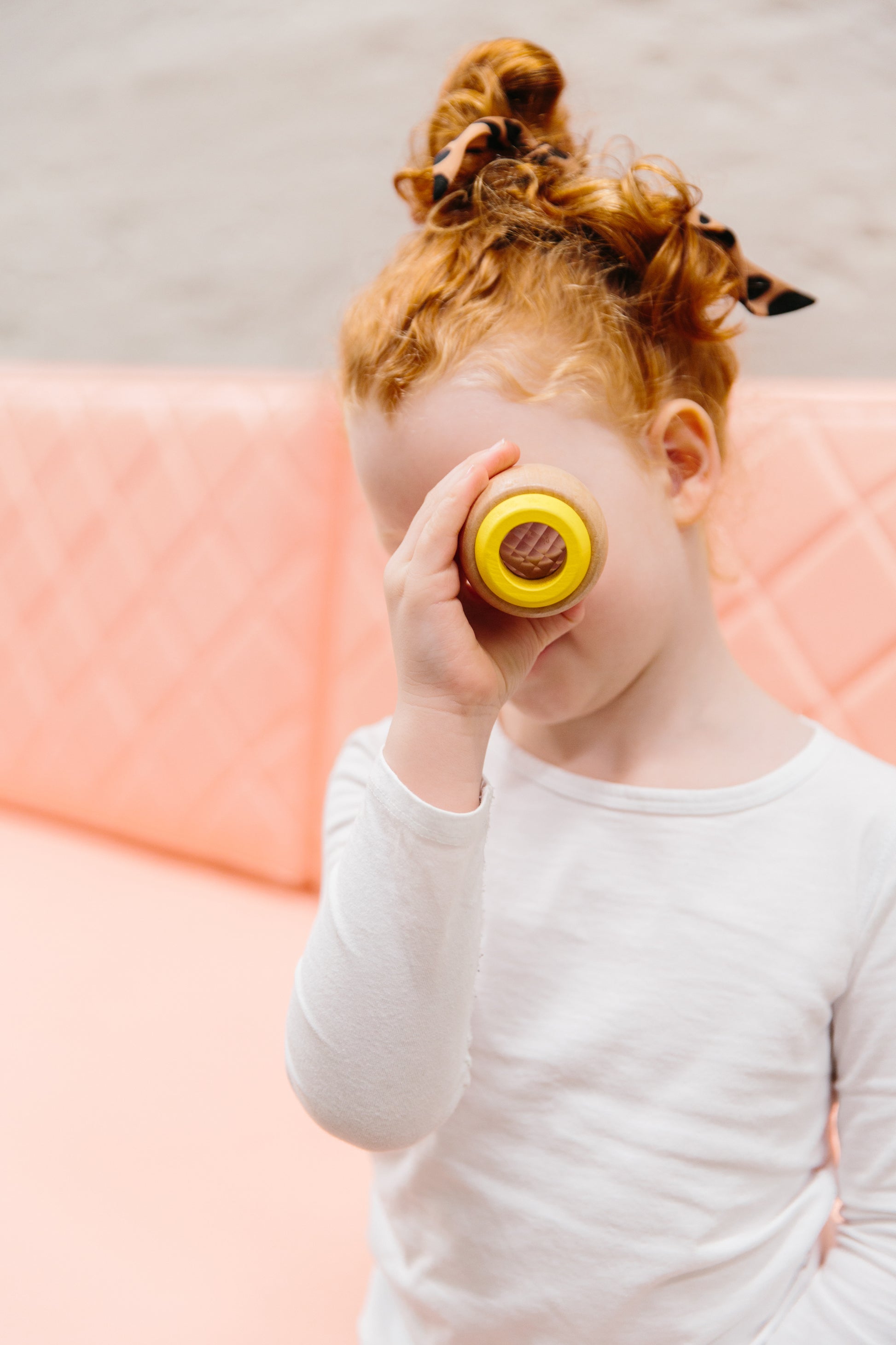 Inspire curiosity with a Wooden Kaleidoscope, a timeless toy that turns light and colour into magic. Designed for little hands, kids can twist and tilt to reveal ever-changing patterns and reflections, exploring the wonder of optical play - no screens or batteries needed. Crafted from solid natural wood, it’s durable, beautiful, and endlessly fascinating. A mindful toy for curious minds. By Make Me Iconic, proudly stocked by Dex & Lani Kids and Living.